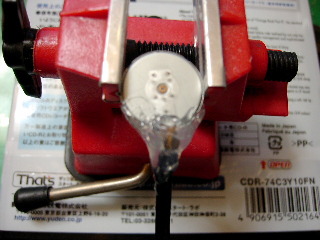電極は薄いフィルムなので、すぐ切れてしまいそう。 そこで、ホットメルトボンドで補強する。 |