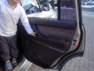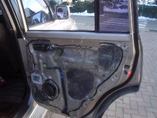 とりあえず,内張をはがしてみる。すべて差し込みのプラスチックロックで止まっているので,とっての部分のねじをはずして取り外した後,引っ張るだけで取り除くことができた。