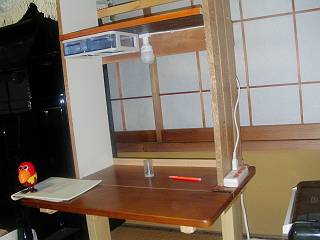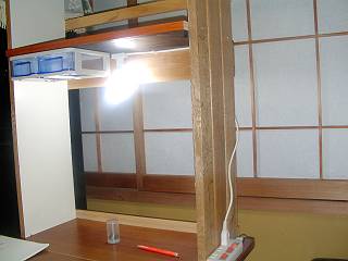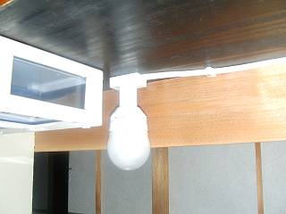 明かりは,小さい口がね(E−17:200円)に電球型蛍光灯(8wで白熱電球の40w相当)スイッチはテーブルタップとした。