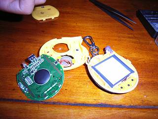 娘がたまごっちをおとしてしまったら、画面の表示が不安定になって何も表示されないことも多くなってしまった。そこで分解してみたついでに、背景の画像をオリジナルなものに差し替えてみた。