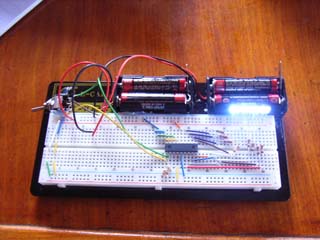 小型ブレッドボードでのLEDライト試作(PIC6) |