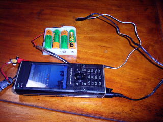 ○その1 USBポートから充電するケーブル。100円ショップで売っている携帯電話用の充電ケーブルを切ってW−ZERO3にあうコネクタ(近くの電気パーツショップでコード付きのものが300円だった。本来ならプラグだけの方がスマートにできあがるし安上がりだろうけれど、それは置いてなかった)を直接接続した。ACアダプタにも書いてあるように真ん中が+になるように接続しただけ。
