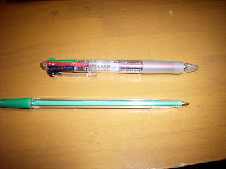 用意したのは、4色ボールペンと安物でうまくかけない緑色ボールペン。