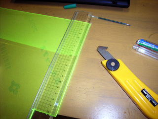 スタイラスのチップとなる部分はアクリル板を使うことにして、細く切り出した。(これもちょうど緑色が余っていた)
