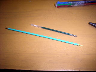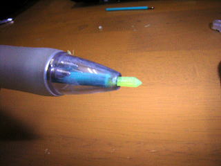 元々のペン軸と同じ長さに切断して、緑色の入っていた場所に差し込んで固定した。