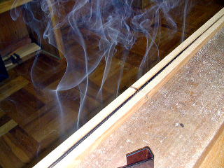 ところが、通電したままにすると心配したとおり木が焦げて煙が出てきた。これでは授業じゃ使えない。