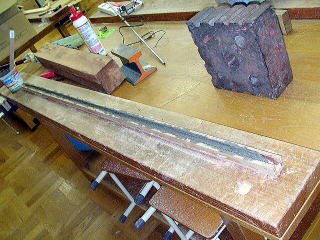 一度に何人もが作業できるように、長い材料を使うことにした。(この方がニクロム線を延ばして使うことができ具合がよい)