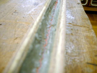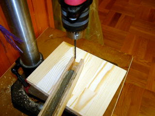 コンクリートも乾いたので、両端に端子を付ける穴を開ける。裏側には端子にするボルトの頭が埋まるように菊座をあける。