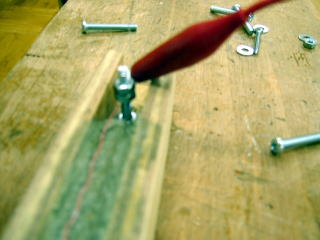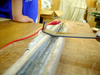 そこで、ダイオードをかませて出力を落としたところ、ちょうど赤くなるくらいとなったが、あつくなることで伸びてしまい、ニクロム線の高さが下がってしまった。塗装も含め、もう一日完成を先送りにすることにした。