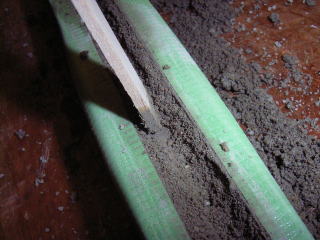 いったん平らに埋めた後、細い棒で溝を作っていく。