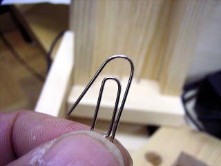 ピアノ線(100円ショップには売っていなかった)や銅線(0.9mmが10mで100円)、真鍮線(0.9mmが10mで100円)を考えたが、そこらに転がっていたクリップを使ってみることにした。