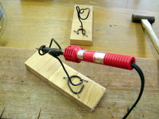 以前、一般的に売られているハンダごて台のように、バネ状に針金を曲げてみたが今ひとつ上手くなかったので、今回はもう少し接触部分を小さくして保持するようにしてみた。