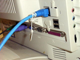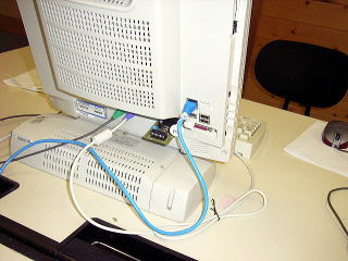 学校のPCはパネルトップなのでディスプレイの裏側に232Cポートがある。