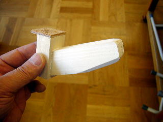 残りをまっすぐに切って、2つをあわせる。ボンドと釘で接合。