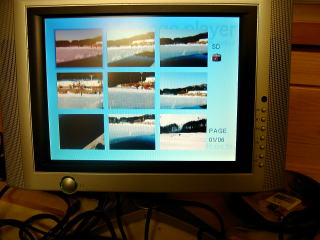 写真の再生、最初に9枚のサムネイル(というには大きいけど)がでて、その後選ぶとスライドショーが始まる。