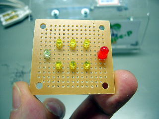 タイマーとしての利用が主になろうから、6つをメインに配置、左側は補助に、右側はACがオンになっているときにつくパイロットLED(今回は自動点滅LEDを使用)