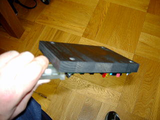 PICの差し込み部分だけを出して覆ってしまうようなケースも考えてみたけれど、あまり大きくなってしまうのも考え物なので、下に板を付けるだけにした。材料は1年生の端材。木目が横になってしまうのは仕方がないということで。