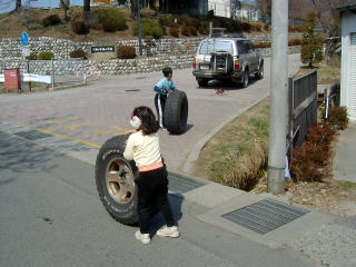 その後、妻の車をタイヤ交換。この頃になるとさすがに子ども達は飽きてしまって近所で遊んでいた。