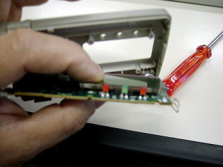 LEDの基板部分。真ん中のLEDだけ基板にかかれた図記号と逆に取り付けてあるけれど、今までは正常に動作していたというので、そんな理由では無かろう。
