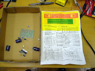 来年度の全日中大会では、ステレオアンプを使ってスピーカーを鳴らし、それを制御するという授業をやる学校もある。自分もどんなものだか興味があったのと、実際に普段持っているMP3プレーヤーで大勢に聞かせるためのセットがほしいと思っていたので、先日業者さんの所へ行ったときに強引にもらってきていたキットを組み立ててみた。