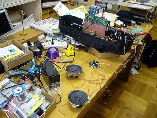 12Vのバッテリーにつないでラジカセについていたスピーカーを鳴らしてみると、そこそこのパワーで鳴ってくれる。12Vだと出力は5w近くでていることになっているので、これならかなりの実用品になりそう。これからスピーカーの箱とアンプや電源を納めて一つにするつもり。