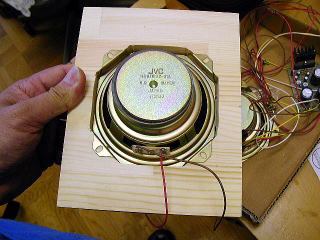 八角形のスピーカは6Ωのビクター製、スペックはわからないので、単純な密閉型のボックスにした。