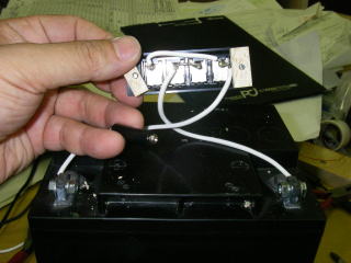 中古のシールドバッテリー(12V24Ahで1400円)を購入して、端子を直接バッテリーにネジ止めした。