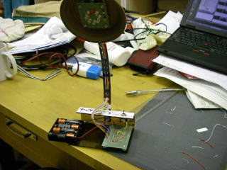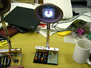 気を取り直して配線し直す。右は基盤上、ICソケットさえも使わずにジャンパー線のみで配線。