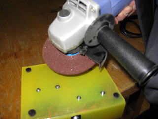 電池ボックスは上から皿ネジでとめるため、下側にネジが飛び出てしまうので、ディスクサンダーで削った。