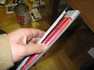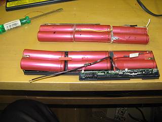以前秋葉原で買ってきた新品バッテリー(1500円)を分解して、中古で買った自分のノートパソコン用バッテリーに中身を入れ替えてみた。