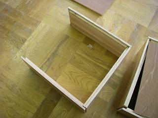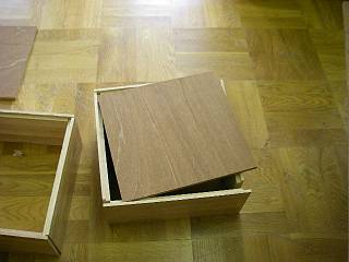 以前手に入れてあったパソコンデスクの天板を切って箱の枠にした。