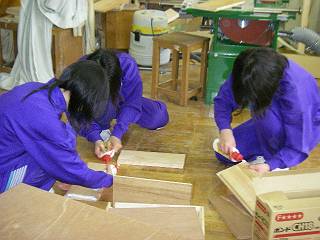 玄関におくことになったのだが、それを収納しておく箱を作るように依頼があったので、休日のクラブで生徒と一緒に作り始めた。
