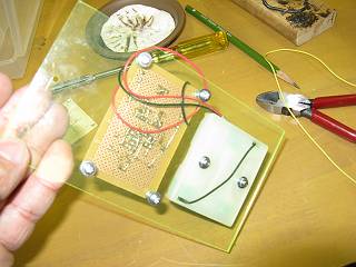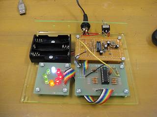 実験用なので、アクリル板1枚にすべての部品を並べて製作。