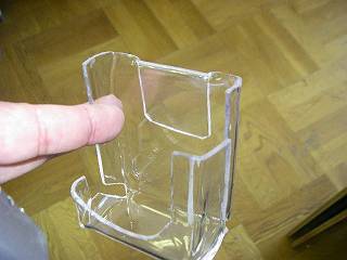 毎度のごとく、ペット材を曲げて現物あわせで作成、上方向のみに抜き差しできるようにして作った。