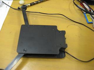プラスマイナスをひっくり返せば、逆回転するかなと思ってモータ部の端子を出す。