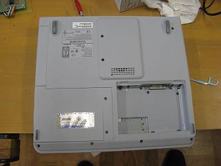 こっちのノートは起動しなくなった方。とりあえずHDDは回っているので、ドライブを取り出してみる。