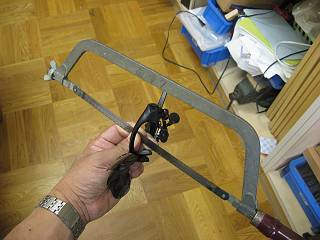 弓のこで切断してヤスリをかけて仕上げることにした。レンズが跳ね上がるので作業は簡単。