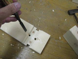 今までと同じように留められるよう、溝と穴を加工した。