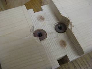 これは、脚を金具に固定するための鬼ナットを埋める部分。