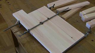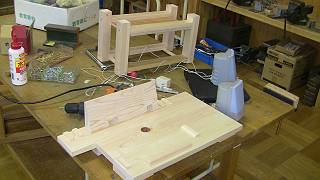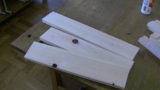 天板はかんなで削った後、裏側に脚を留めるガイドをつけた。(脚は天板を載せるだけにした)