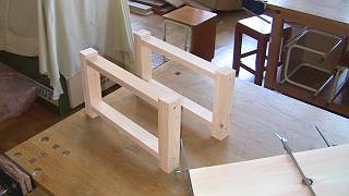 材料は今年の一年生で使った木曽ヒノキのあまり材。ノートパソコンの大きさに合わせて天板を作り、座卓の高さに脚を作った。