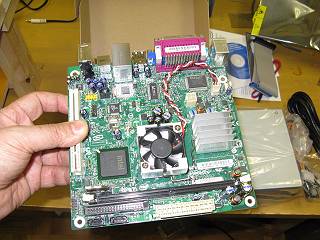 右側の放熱フィンがついているのがatom330。こんなので動いちゃうんだから、技術の進化はすごいなあ。