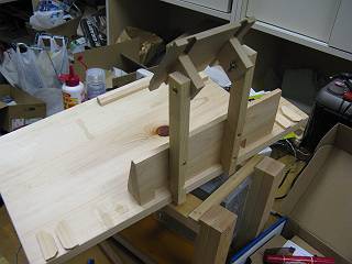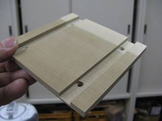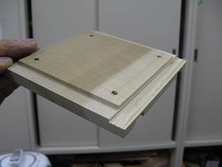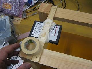 そこで、木を使ってマウンタを製作。ねじ穴と枠をあわせて現物あわせで切削する。