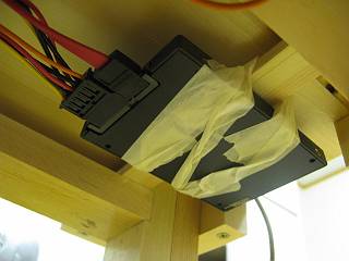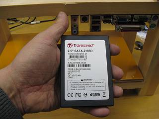今回の目玉。SSD32GB。まず、持った感じがすごく軽い。そのうち、ノートもこれに取り替えようかな。(もちろん、大容量化・低価格化を見据えてからだけど)