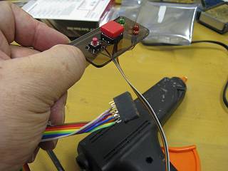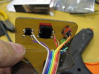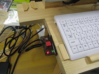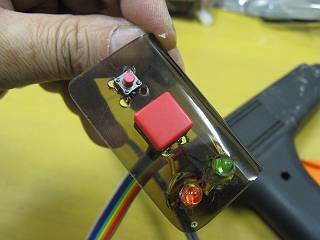 スイッチは、秋月で買った30円のプッシュオンスイッチ、7円のタクトスイッチ。固定はアクリル板にホットボンドで。
