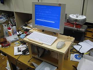 木製テーブル一体型パソコンということになりましょうか。王道パーツを使いながらもちょっと(かなり)貧相になるところが自分らしい。