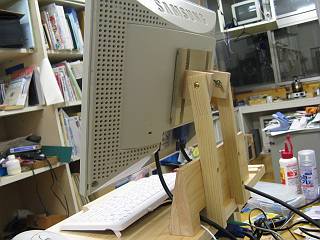 しまりのないノートパソコンのディスプレイを支えるための板がちょうどうまくアーム基部になった。