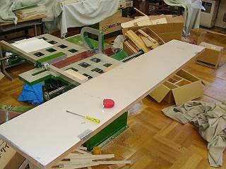 まずは、研究室の棚に中間の棚板を設置。棚板には以前職員室を改装した際に取ってあったロッカーの扉を使用。