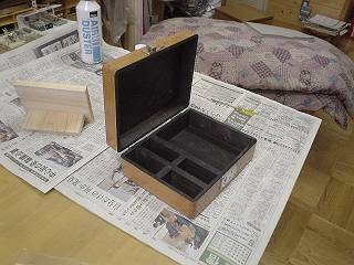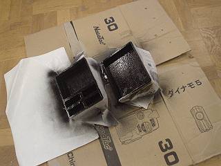 内部は黒のスプレー塗装。外側は机のモール塗装のために買っておいたウレタン塗装を試しに使ってみた。