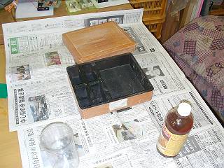 今までの学級で使っていた印箱を次の学年に引き継ごうとしたが、あまりに汚れていたので塗装をすることにした。
